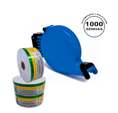 Dispensador Tira Senha Bico De Pato + Bobina – Azul Cód. 1431 – Ideal para Supermercado, Loja, Açougue, Padaria e Comércio