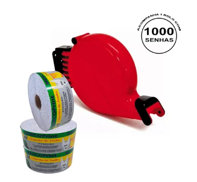 Dispensador Tira Senha Bico De Pato + Bobina – Vermelho Cód. 1368 – Ideal para Supermercado, Loja, Açougue, Padaria e Comércio