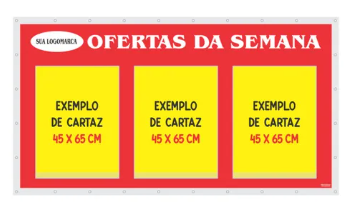 Lona Banner 200x110cm c/ 3 Bolsões Para Cartaz Cód. 2354 – Ideal para Supermercado, Loja, Açougue, Padaria e Comércio