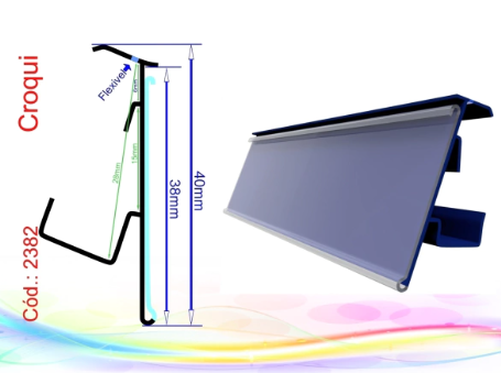 Porta Etiqueta Preço Perfil Gôndola Cristal Aço Cód. 2382 – Para Gôndolas, Prateleiras, Gavetas, Bandejas, Caixas, Etc. Ideal para Supermercado, Loja, Açougue, Padaria e Comércio.