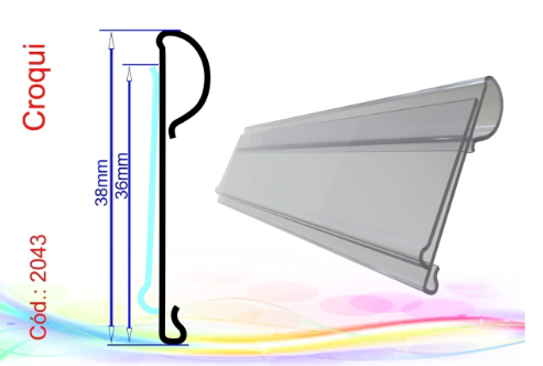 Porta Etiqueta Preço Perfil Gôndola Peg Huck Cód. 2043 – Para Gôndolas, Prateleiras, Etc. Ideal para Supermercado, Loja, Açougue e Comércio